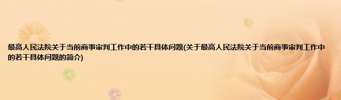 最高人民法院关于当前商事审判工作中的若干具体问题(关于最高人民法院关于当前商事审判工作中的若干具体问题的简介)