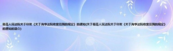 大家好,最高人民法院关于印发《关于海事法院收案范围的规定》的通知,关于最高人民法院关于印发《关于海事法院收案范围的规定》的通知的简介很多人还不知道,现在让我们一起来看看吧!