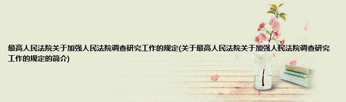 本文关于最高人民法院关于加强人民法院调查研究工作的规定的简介就讲解完毕,希望对大家有所帮助。