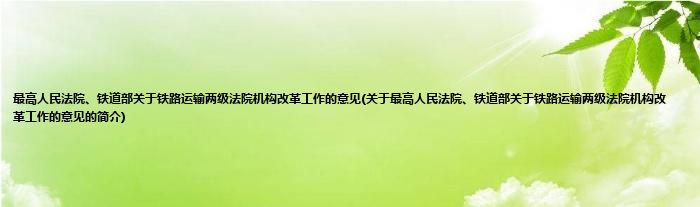 大家好,最高人民法院、铁道部关于铁路运输两级法院机构改革工作的意见,关于最高人民法院、铁道部关于铁路运输两级法院机构改革工作的意见的简介很多人还不知道,现在让我们一起来看看吧!