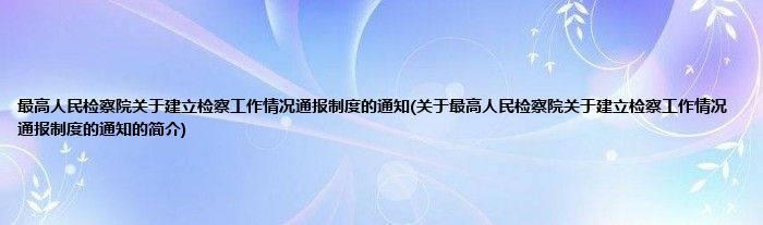 大家好,最高人民检察院关于建立检察工作情况通报制度的通知,关于最高人民检察院关于建立检察工作情况通报制度的通知的简介很多人还不知道,现在让我们一起来看看吧!
