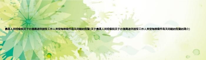 最高人民检察院关于办理离退休国家工作人员受贿罪案件有关问题的批复(关于最高人民检察院关于办理离退休国家工作人员受贿罪案件有关问题的批复的简介)