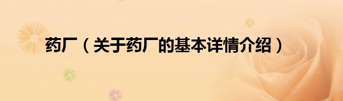 本文关于药厂的基本详情介绍就讲解完毕,希望对大家有所帮助。