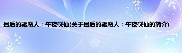 本文关于最后的驱魔人:午夜碟仙的简介就讲解完毕,希望对大家有所帮助。