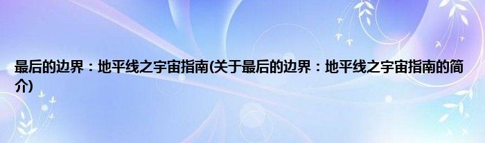 大家好,最后的边界:地平线之宇宙指南,关于最后的边界:地平线之宇宙指南的简介很多人还不知道,现在让我们一起来看看吧!