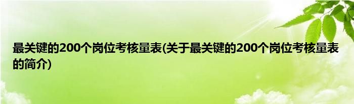 本文关于最关键的200个岗位考核量表的简介就讲解完毕,希望对大家有所帮助。
