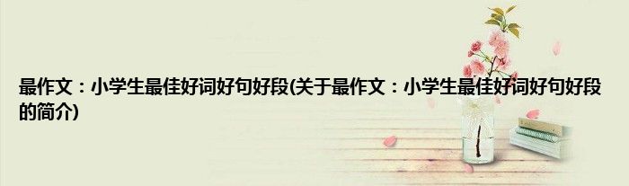 本文关于最作文:小学生最佳好词好句好段的简介就讲解完毕,希望对大家有所帮助。