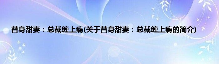 本文关于替身甜妻:总裁缠上瘾的简介就讲解完毕,希望对大家有所帮助。