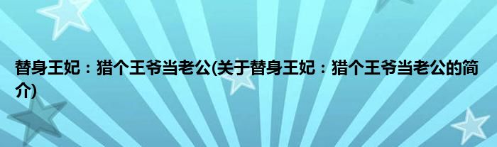 本文关于替身王妃:猎个王爷当老公的简介就讲解完毕,希望对大家有所帮助。
