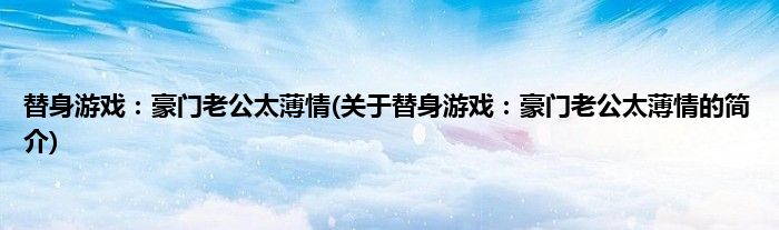 本文关于替身游戏:豪门老公太薄情的简介就讲解完毕,希望对大家有所帮助。