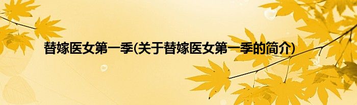 本文关于替嫁医女第一季的简介就讲解完毕,希望对大家有所帮助。