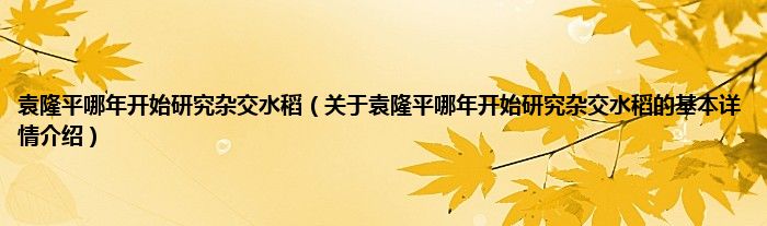 本文关于袁隆平哪年开始研究杂交水稻的基本详情介绍就讲解完毕,希望对大家有所帮助。