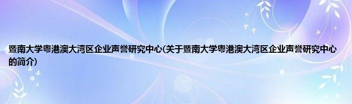 本文关于暨南大学粤港澳大湾区企业声誉研究中心的简介就讲解完毕,希望对大家有所帮助。