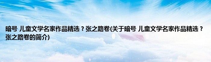 本文关于暗号 儿童文学名家作品精选?张之路卷的简介就讲解完毕,希望对大家有所帮助。