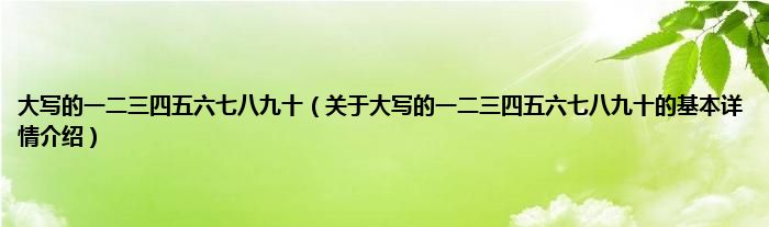 本文关于大写的一二三四五六七八九十的基本详情介绍就讲解完毕,希望对大家有所帮助。