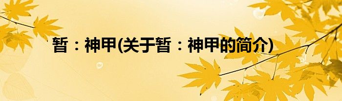 大家好,暂:神甲,关于暂:神甲的简介很多人还不知道,现在让我们一起来看看吧!