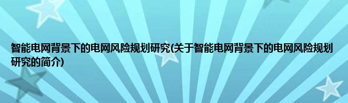 本文关于智能电网背景下的电网风险规划研究的简介就讲解完毕,希望对大家有所帮助。