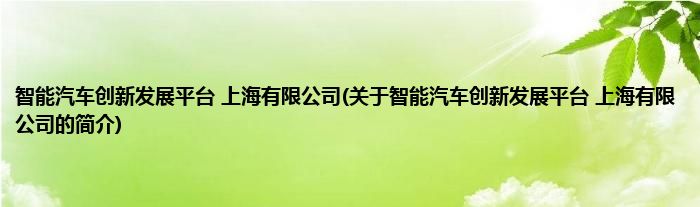 本文关于智能汽车创新发展平台 上海有限公司的简介就讲解完毕,希望对大家有所帮助。