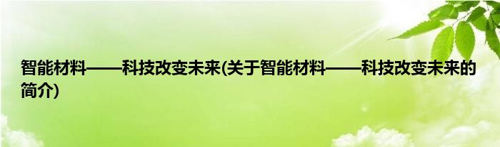 本文关于智能材料——科技改变未来的简介就讲解完毕,希望对大家有所帮助。
