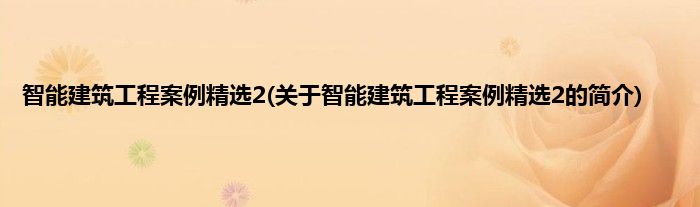 本文关于智能建筑工程案例精选2的简介就讲解完毕,希望对大家有所帮助。
