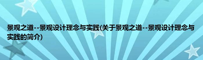 大家好,景观之道--景观设计理念与实践,关于景观之道--景观设计理念与实践的简介很多人还不知道,现在让我们一起来看看吧!
