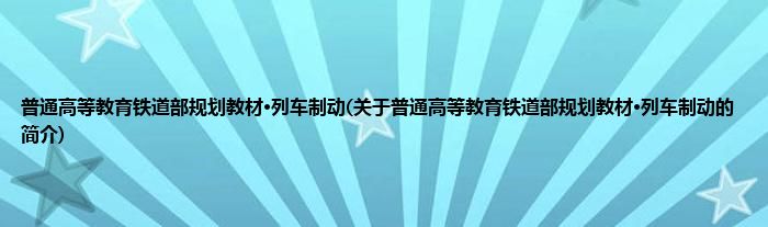 本文关于普通高等教育铁道部规划教材·列车制动的简介就讲解完毕,希望对大家有所帮助。