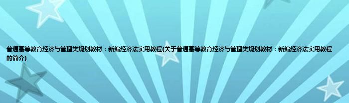 普通高等教育经济与管理类规划教材:新编经济法实用教程(关于普通高等教育经济与管理类规划教材:新编经济法实用教程的简介)