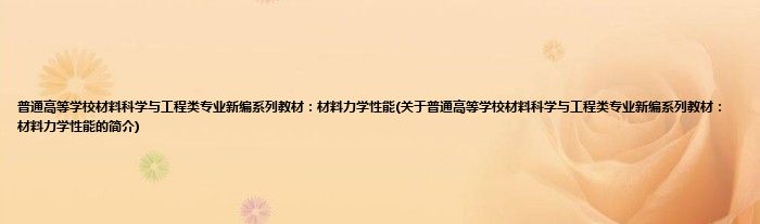 普通高等学校材料科学与工程类专业新编系列教材:材料力学性能(关于普通高等学校材料科学与工程类专业新编系列教材:材料力学性能的简介)