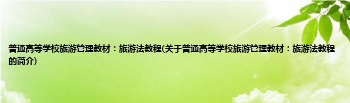 最佳答案大家好,普通高等学校旅游管理教材:旅游法教程,关于普通高等学校旅游管理教材:旅游法教程的简介很多人还不知道,现在让我们一起来看看吧! 1、 《普通高等学校旅游管理教材:旅游法教程》包括旅游法概述、宪法基础知识、旅游合同法律制度、旅行社管理法律制度、导游人员管理法律制度、旅游饭店经...