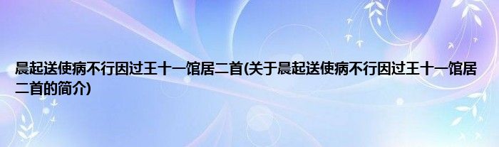晨起送使病不行因过王十一馆居二首(关于晨起送使病不行因过王十一馆居二首的简介)