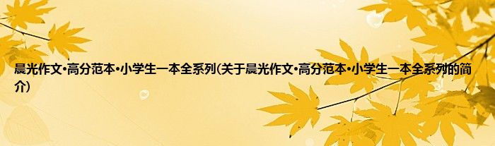 本文关于晨光作文·高分范本·小学生一本全系列的简介就讲解完毕,希望对大家有所帮助。