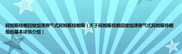 大家好我是小蝌蚪,阿姆斯特朗回旋加速喷气式阿姆斯特朗炮,关于阿姆斯特朗回旋加速喷气式阿姆斯特朗炮的基本详情介绍很多人还不知道,那么现在让我们一起来看看吧!