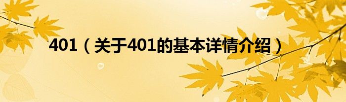 本文关于401的基本详情介绍就讲解完毕,希望对大家有所帮助。