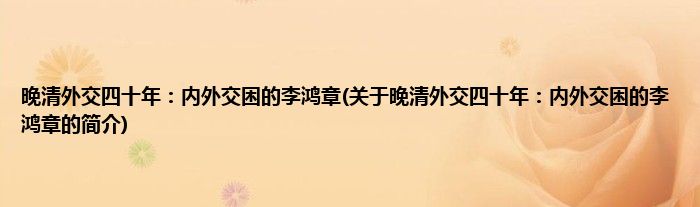 本文关于晚清外交四十年:内外交困的李鸿章的简介就讲解完毕,希望对大家有所帮助。