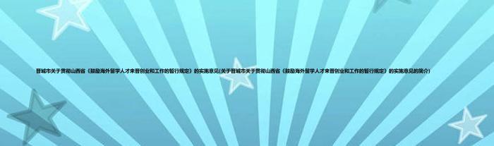 本文关于晋城市关于贯彻山西省《鼓励海外留学人才来晋创业和工作的暂行规定》的实施意见的简介就讲解完毕,希望对大家有所帮助。