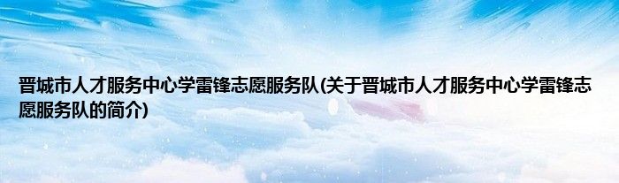 1、 晋城市人才服务中心学雷锋志愿服务队是由市直机关志愿服务联合会领导下的志愿团体。
