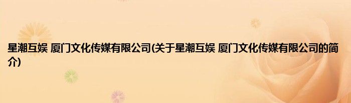 本文关于星潮互娱 厦门文化传媒有限公司的简介就讲解完毕,希望对大家有所帮助。