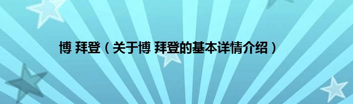 大家好我是小蝌蚪,博 拜登,关于博 拜登的基本详情介绍很多人还不知道,那么现在让我们一起来看看吧!