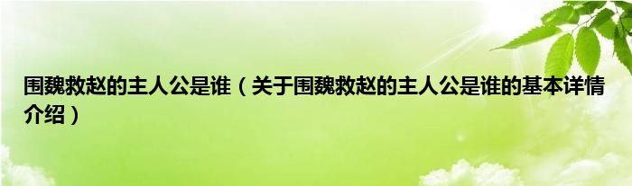 本文关于围魏救赵的主人公是谁的基本详情介绍就讲解完毕,希望对大家有所帮助。