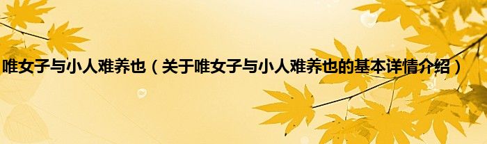 本文关于唯女子与小人难养也的基本详情介绍就讲解完毕,希望对大家有所帮助。