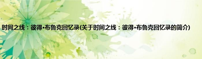 本文关于时间之线:彼得·布鲁克回忆录的简介就讲解完毕,希望对大家有所帮助。