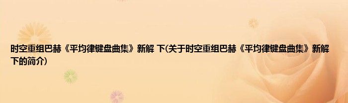本文关于时空重组巴赫《平均律键盘曲集》新解 下的简介就讲解完毕,希望对大家有所帮助。
