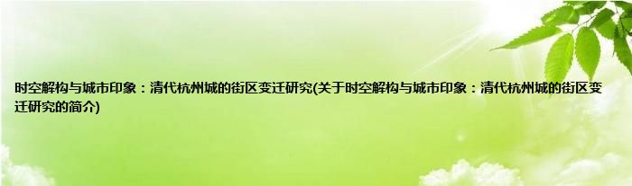 本文关于时空解构与城市印象:清代杭州城的街区变迁研究的简介就讲解完毕,希望对大家有所帮助。
