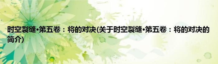 本文关于时空裂缝·第五卷:将的对决的简介就讲解完毕,希望对大家有所帮助。