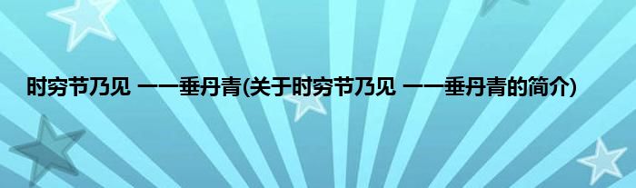 时穷节乃见一一垂丹青(关于时穷节乃见一一垂丹青的简介)