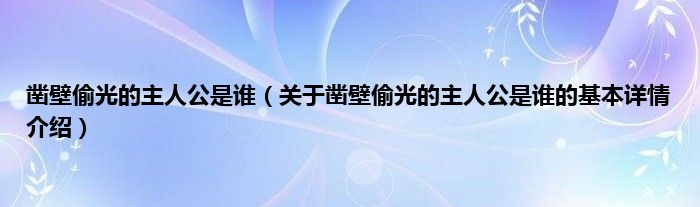 凿壁偷光的主人公是谁(关于凿壁偷光的主人公是谁的基本详情介绍)