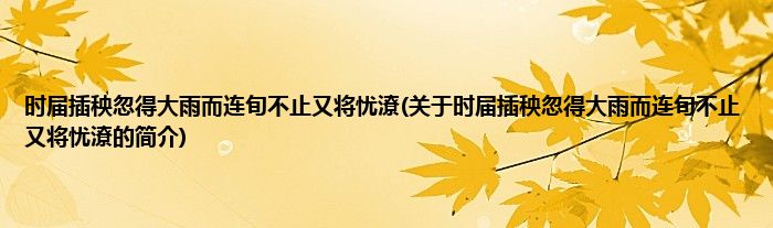 大家好,时届插秧忽得大雨而连旬不止又将忧潦,关于时届插秧忽得大雨而连旬不止又将忧潦的简介很多人还不知道,现在让我们一起来看看吧!