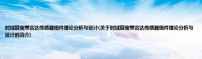大家好,时域超宽带雷达传感器组件理论分析与设计,关于时域超宽带雷达传感器组件理论分析与设计的简介很多人还不知道,现在让我们一起来看看吧!