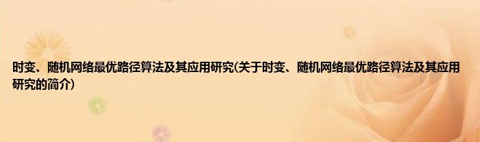 大家好,时变、随机网络最优路径算法及其应用研究,关于时变、随机网络最优路径算法及其应用研究的简介很多人还不知道,现在让我们一起来看看吧!