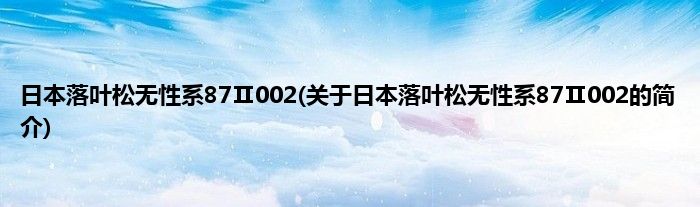 本文关于日本落叶松无性系87Ⅱ002的简介就讲解完毕,希望对大家有所帮助。